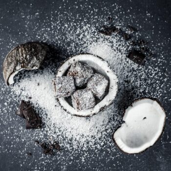 Maslo rozpustíme. Vmiešame doň cukor, smotanu, kokos a vypracujeme na hladkú hmotu. Menší...