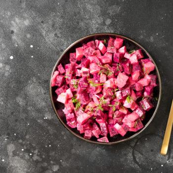 Šalát z červenej repy s kozím syrom je živé a aromatické jedlo, ktoré spája zemitú...
