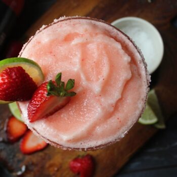 Jahodová margarita je dokonalý letný koktail. Pre mimoriadne sladkú chuť namočte okraje...