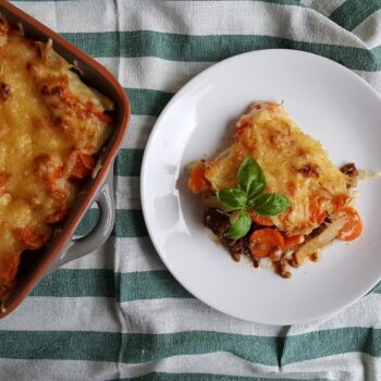 Výdatné jedlo plné zeleniny, mletého mäsa a zemiakov pripravované v zapekacej mise. Po tomto...