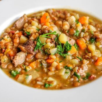 Táto polievka z hovädzieho mäsa a jačmeňa, plná húb je skvelou večerou.