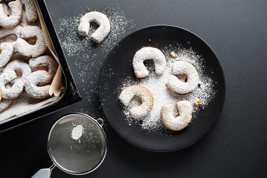 - Práškovým cukrom – Rožky sa môžu jemne poprášiť cez sitko, aby získali „zasnežený“ efekt.